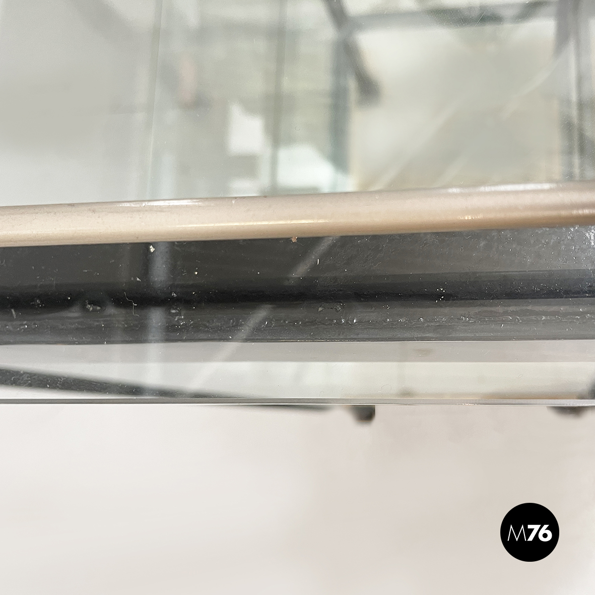 Discrete condizioni leggeri segni sparsi al metallo e graffi al vetro. Ognuno dei due ripiani interni presentano un difetto.