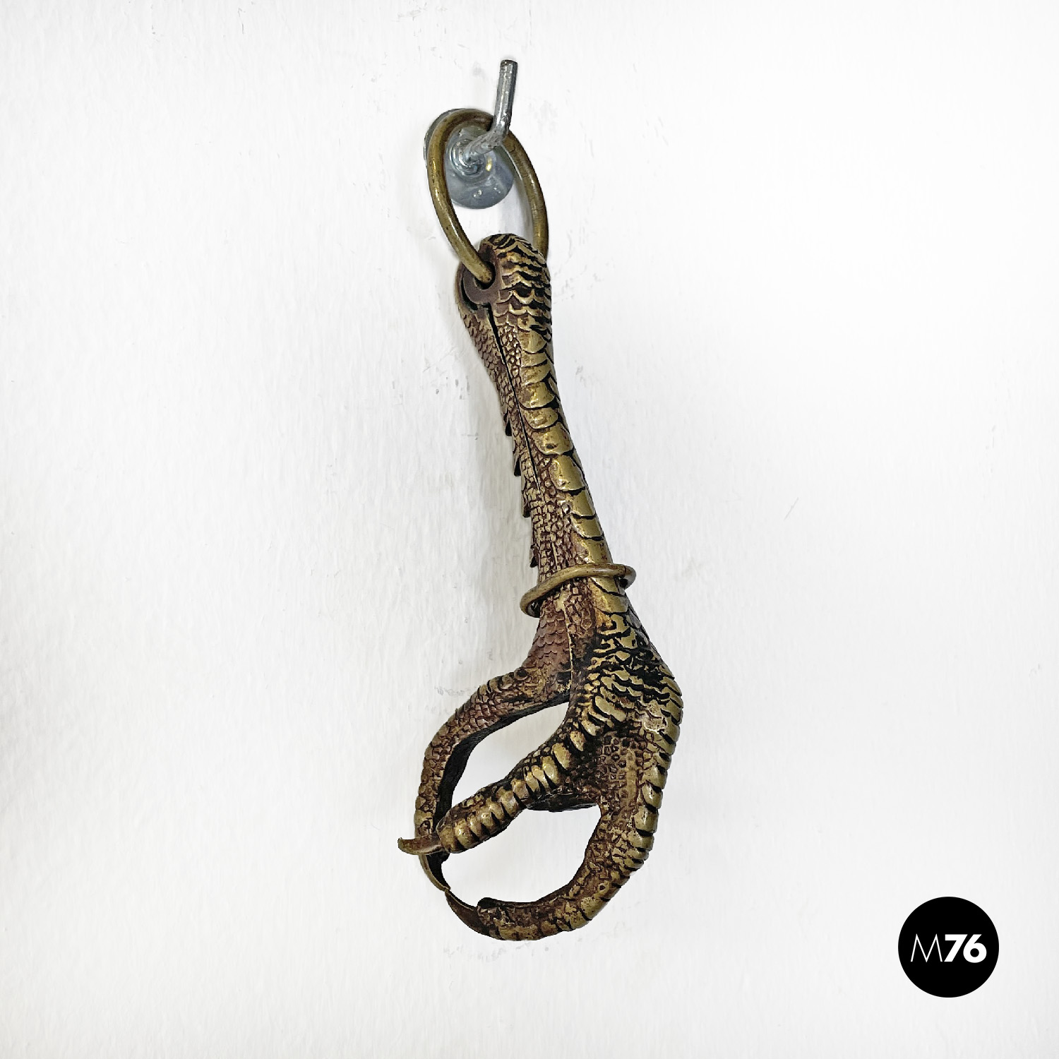 Zampa di fagiano porta selvaggina in bronzo. La struttura è composta da due parti ricordando la forma di una pinza si possono allargare a piacimento e stringere utilizzando l’ellisse in bronzo. Si può appendere grazie al cerchio nella parte finale.